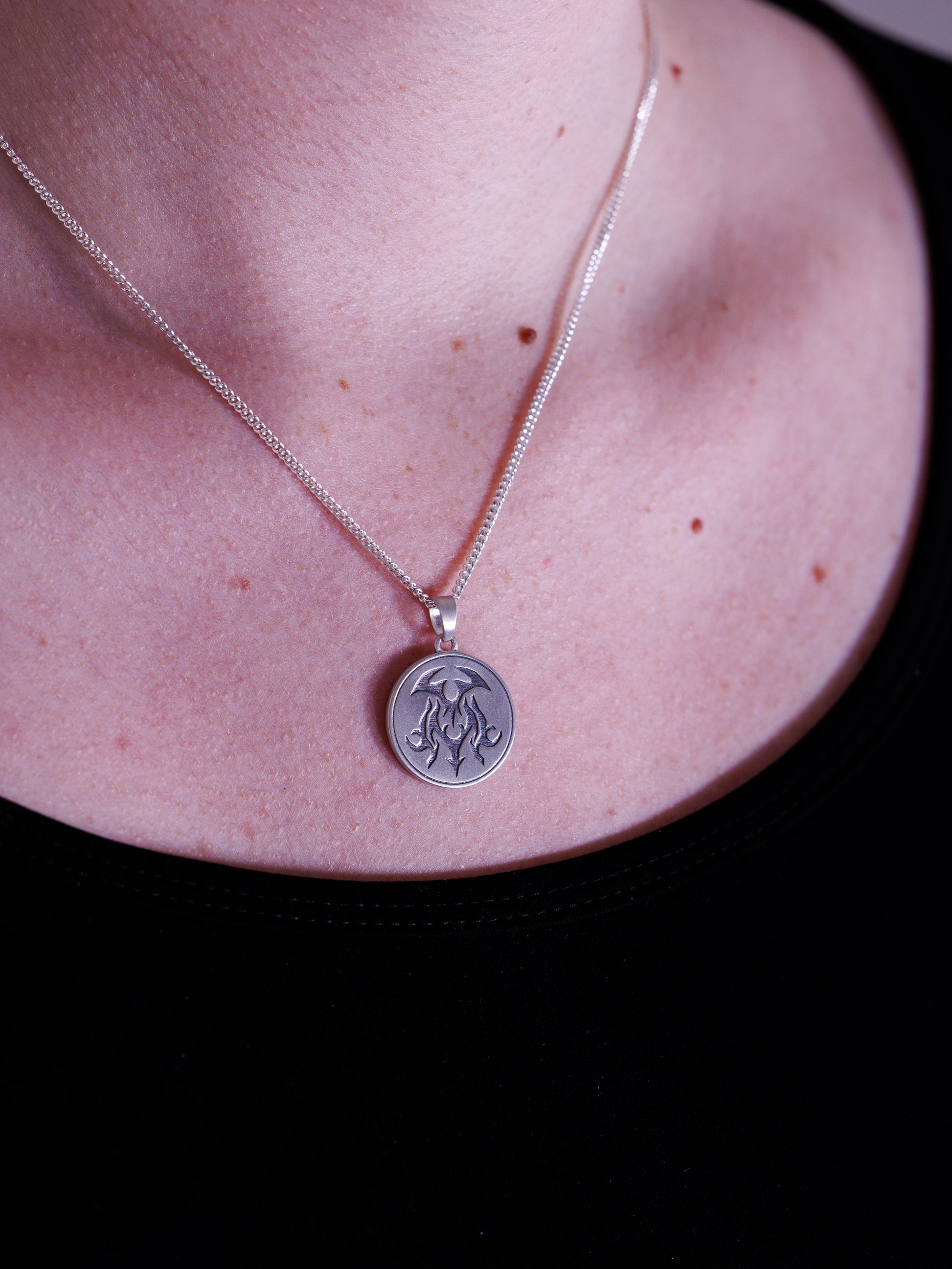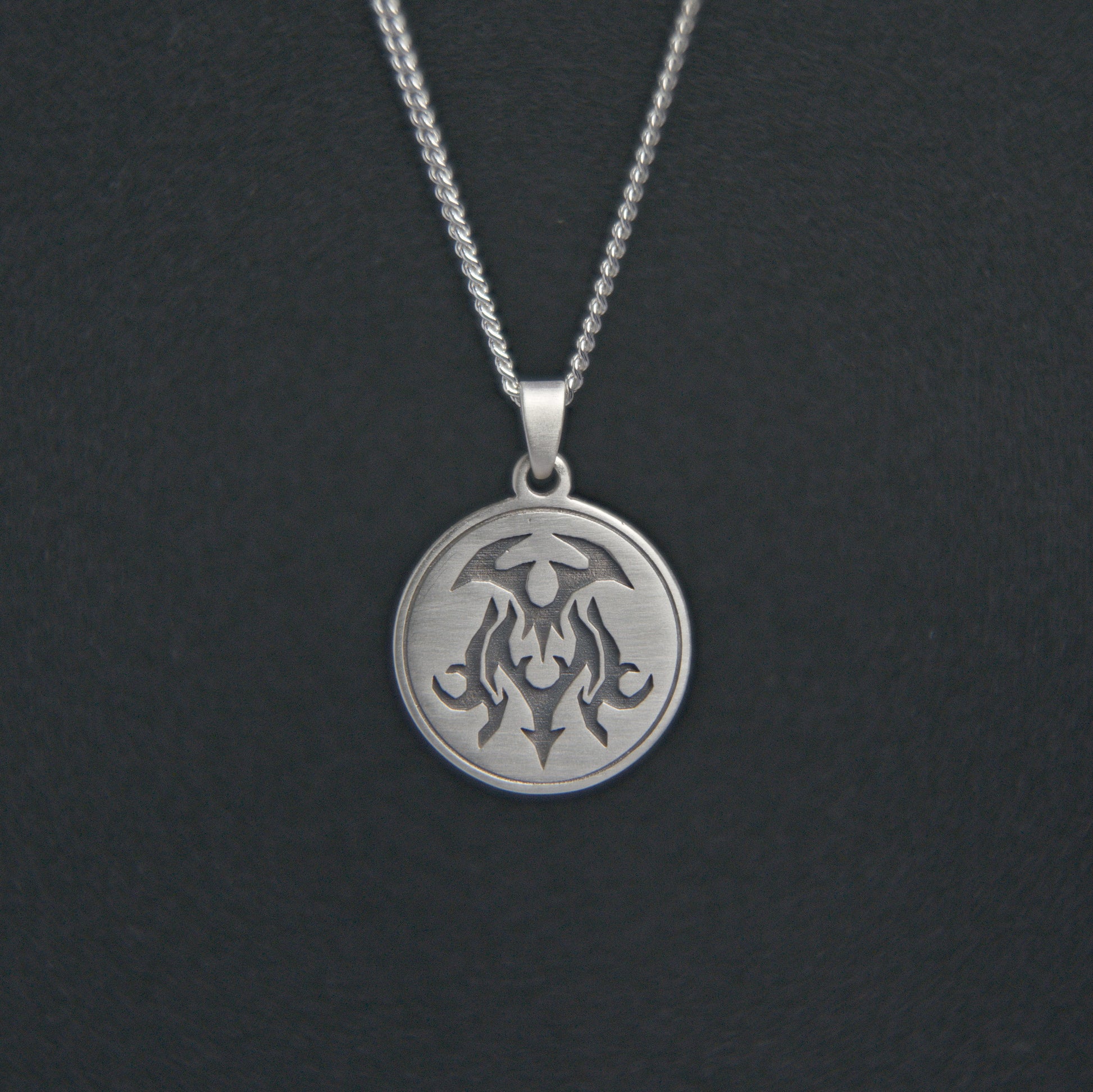 This satin finished 925 sterling silver pendant features the 3 spirit sigils arranged in an abstract configuration of the Corporeal Beast. Rory's personal favourite from the collection.