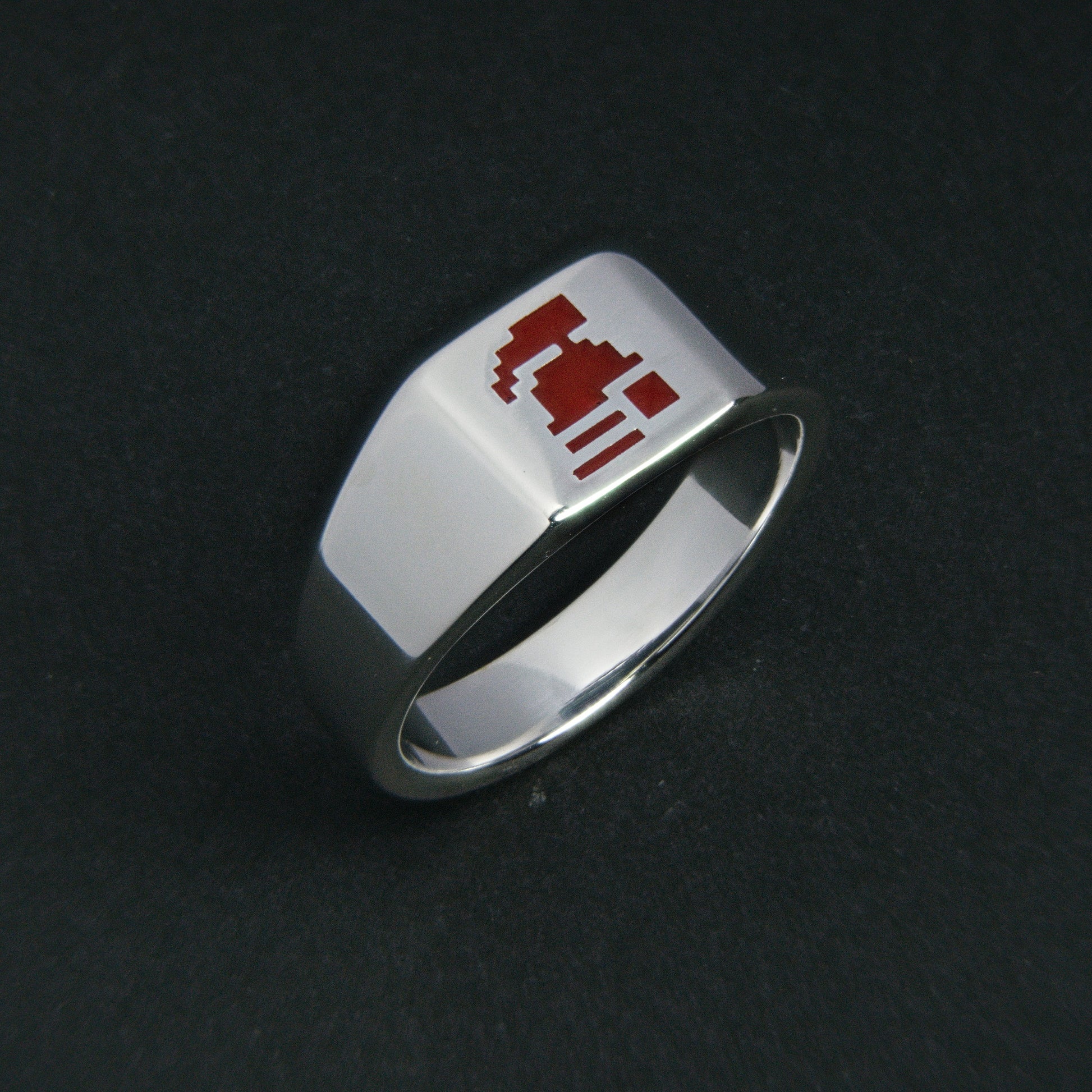 This polished, low profile 925 sterling silver signet ring features the Hardcore Ironman helmet in ceramic UV enamel. This ring can be exchanged for a regular ironman signet ring on death IRL (I will cover shipping as I'm sure your family will have more pressing financial obligations to attend to).